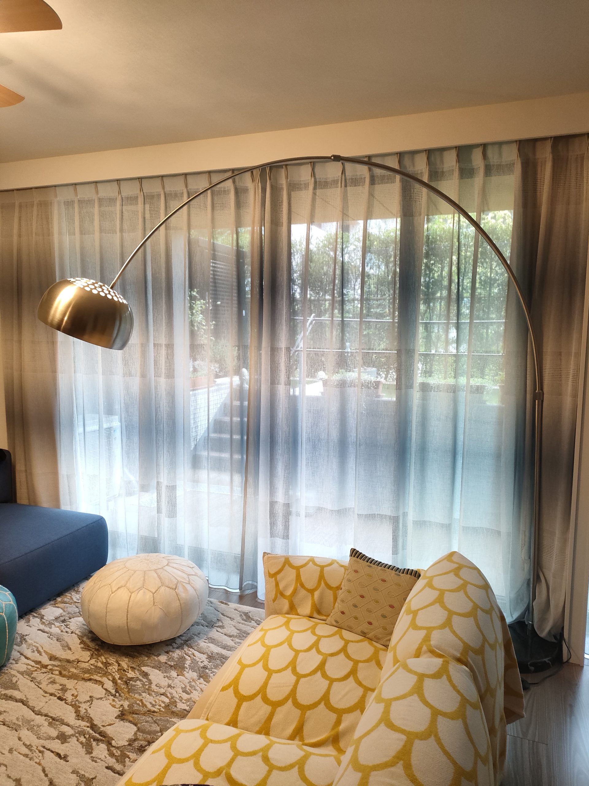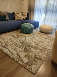 浦安市入船新築マンションにレースカーテンを納品いたしました。マナトレーディングさんのロドスのブルーを選んでいただきました。他にもマナさんのラグを2点、クッションなどもご購入されていらっしゃいました。写真には撮りませんでしたが、玄関の輸入壁紙は素敵すぎてしばし見とれてしまうぐらいです。建築関係のお仕事をされてるので、商品をよくご存知で、センスよくコーディネートされていました。レースカーテンのロドスは写真では分かりづらいですですが、ブルーのグラデーションが繰り返し出る柄です。柔らかい生地とグラデーション感で他にはない風合いを出しています。マナさんのラグもまたモダンでアートのようなデザインで、素敵でした。お部屋全体がおしゃれな感じにしあがっていらっしゃいます。
